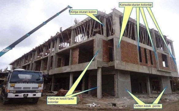 1. Yanlız foğrafa bakarak hüküm vermek doğru değildir. Plan üzerinde yük dağılımı nasıldır ? Sistemin Rijitlik merkezi nerededir ? Bu bilgilerin bilinmesi önelik taşır. Resim üzerindeki kolonlar tali veya mimari görünüş için seçilebilir. Daha fazla bilgiler, “Yapı Dinamiği ve Depreme Dayanıklı , Çağlayan Kitabevi /İstanbul / ” İBrahim Leylek Kitabıma bakılmalıdır. .