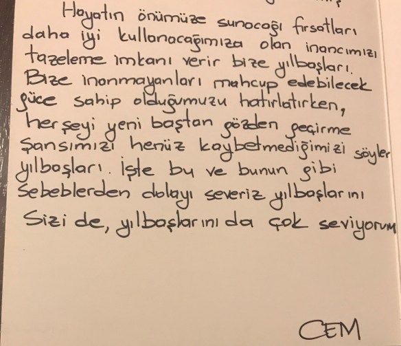 Eskiden, eskiden dediğim de şöyle bir 25 yıl öncesinde yeni yıl tebrik kartları vardı. Üzerindeki resimlere, fotoğraflara bakılıp büyük bir titizlikle tek tek seçilerek alınırdı. Halalara, teyzelere, dayılara, amcalara, eş dosta birbirlerinin kartlarını görebilirler diye farklı farklı şeyler yazılırdı. Herkese aynı şeyleri yazmak bir değer vermezlik olarak düşünülürdü o yıllarda. Hepsi zamanın hızına yenik düştü. Geçenlerde 1993 yılbaşında rahmetli annem ile rahmetli babama yılbaşı hediyesi ile birlikte verdiğim yeni yıl kartını buldum. Uzun uzun yazmışım dileklerimi değil de, yılbaşlarına ilişkin düşüncelerimi.