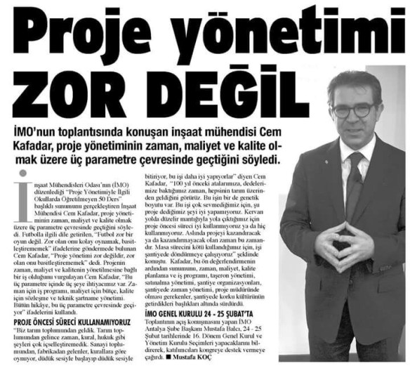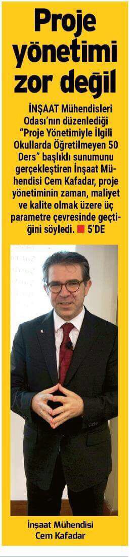 Proje Yönetimi Zor Değil Posted on 5 Şubat 2018 by Cem Kafadar Bunu paylaş: X'te paylaşmak için tıklayın (Yeni pencerede açılır) X Facebook'ta paylaşmak için tıklayın (Yeni pencerede açılır) Facebook Beğen Yükleniyor... İlgili
