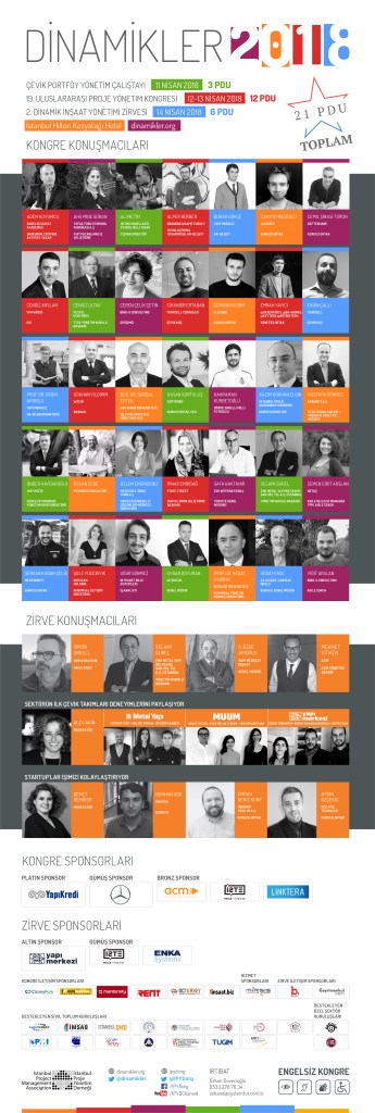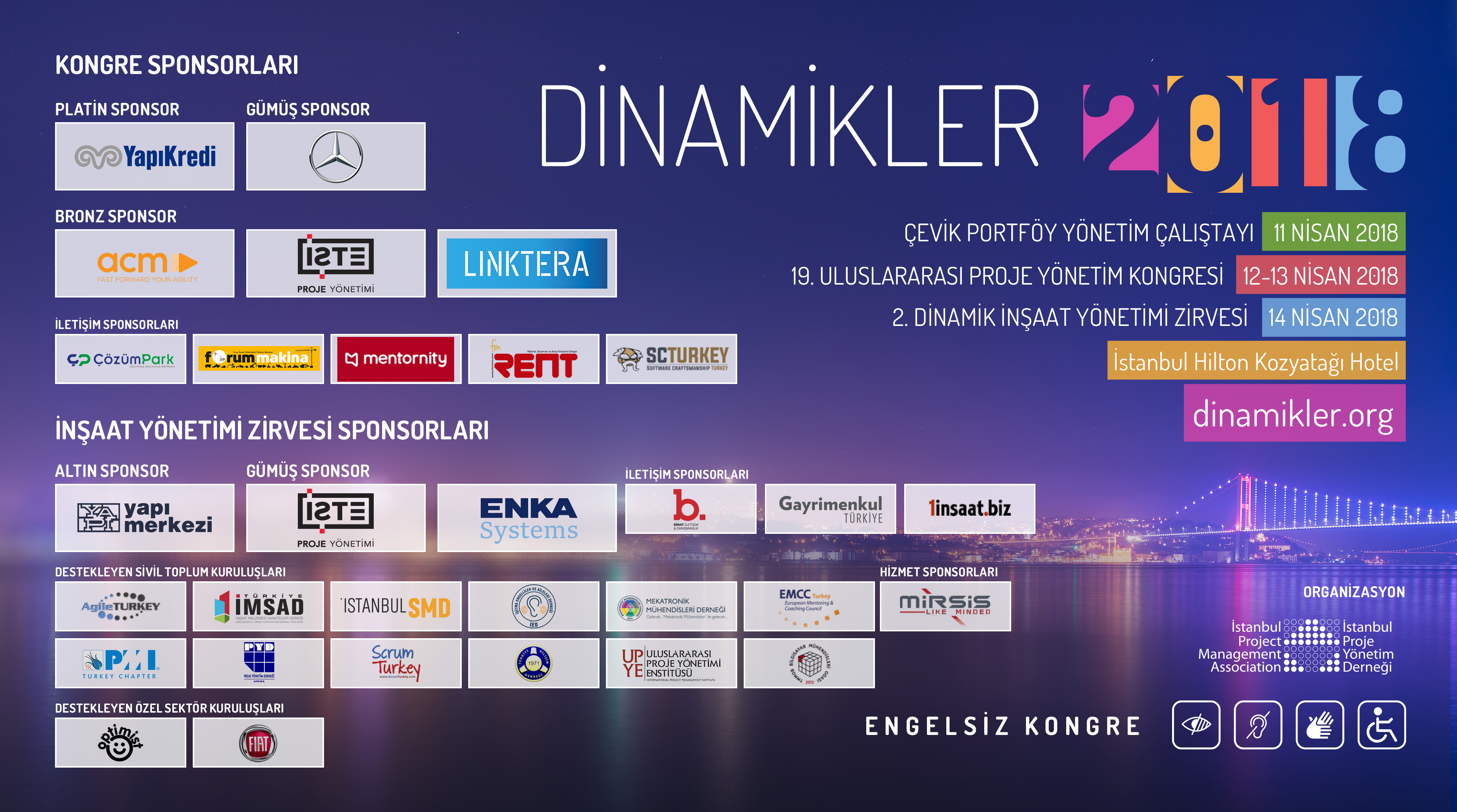 Güçlü marka destekleriyle gerçekleştirilecek olan Dinamikler 2018 | 19 Uluslararası Proje Yönetimi Kongresi, Çevik Portföy Yönetimi Çalıştayı ve 2. İnşaat Yönetimi Zirvesi’nde siz de yerinizi alın.