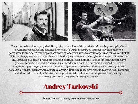 “İnsanlar neden sinemaya gider?” sorusuna Tarkovski’nin yorumu… Posted on 14 Nisan 2018 by Cem Kafadar Bunu paylaş: X'te paylaş (Yeni pencerede açılır) X Facebook üzerinde paylaş (Yeni pencerede açılır) Facebook Beğen Yükleniyor... İlgili