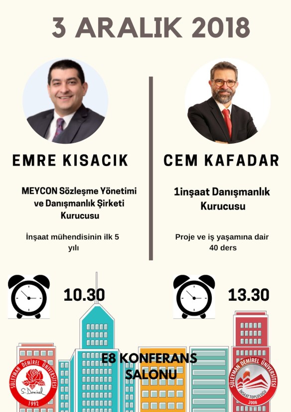 03 Aralık Pazartesi günü saat 13.30’da Süleyman Demirel Üniversitesi öğrencileri ile iş hayatına yönelik okullarda öğretilmeyen ve kolay kolay da öğretilmeyeceğini düşündüğüm konuları konuşacağız…