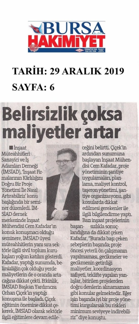 Pazar günkü birebir şantiye yönetimi eğitimleri ile ilgili detaylı bilgi almak ve Ocak ayına ön kayıt yaptırmak için cem@cemkafadar.com adresinden bana yazabilirsiniz.