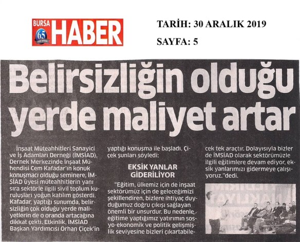 Bugün İzmit Körfez Ticaret Odasında inşaat sektöründe proje yönetiminini;