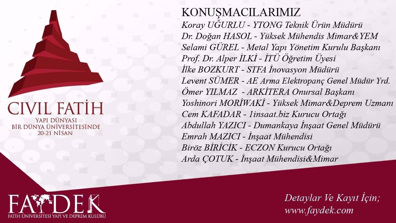 Fatih Üniversitesi FAYDEK Öğrenci Kulubünün kusursuz organizasyonu ile gerçekleşen Yapı Konferansları kapsamında çalışma arkadaşlarım Bengüsu Aktaş ve Defne Yeşim Yazgan ile birlikte keyifli bir sunum gerçekleştirdik. İlk olarak arkadaşlarım, yeni mezunların iş arama sürecinde karşılaştıkları zorluklarla nasıl başaçıkabileceklerini ve iş başvurularında öncelikli olarak nelere dikkat edildiğini anlattılar. Ardından da ben “Okullarda Öğretilmeyen 40 Kısa Ders” konulu sunumumu yaptım. Bizleri bu nitelikli organizasyonlarına davet eden Fatih Üniversitesi Yapı ve Deprem Kulubüne çok teşekkür ederim. Başlattıkları bu güzel etkinliklerinin gelecek yıllarda daha da zenginleşerek gelenekselleşmesini dilerim. 😊