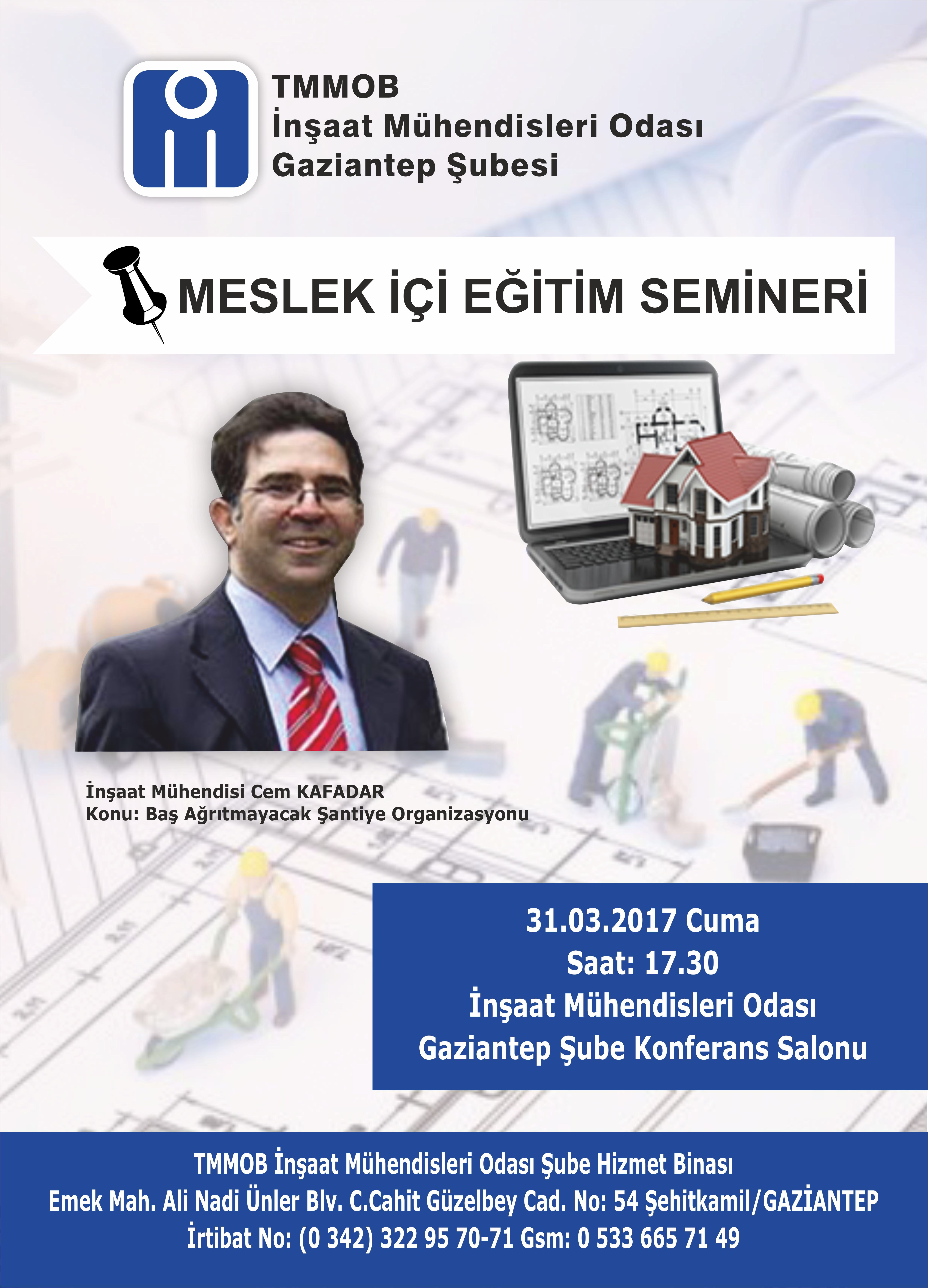 Baş Ağrıtmayacak Bir Şantiye Organizasyonu – İMO Gaziantep 31.03.2017 Saat: 17:30