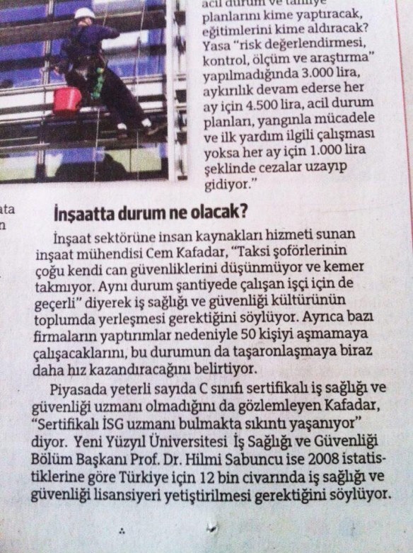 Yeni İs Saglıgı ve Guvenligi Yasası ile ilgili 3 yıl önce Hurriyet İK’da yayınlanan düşüncelerim.